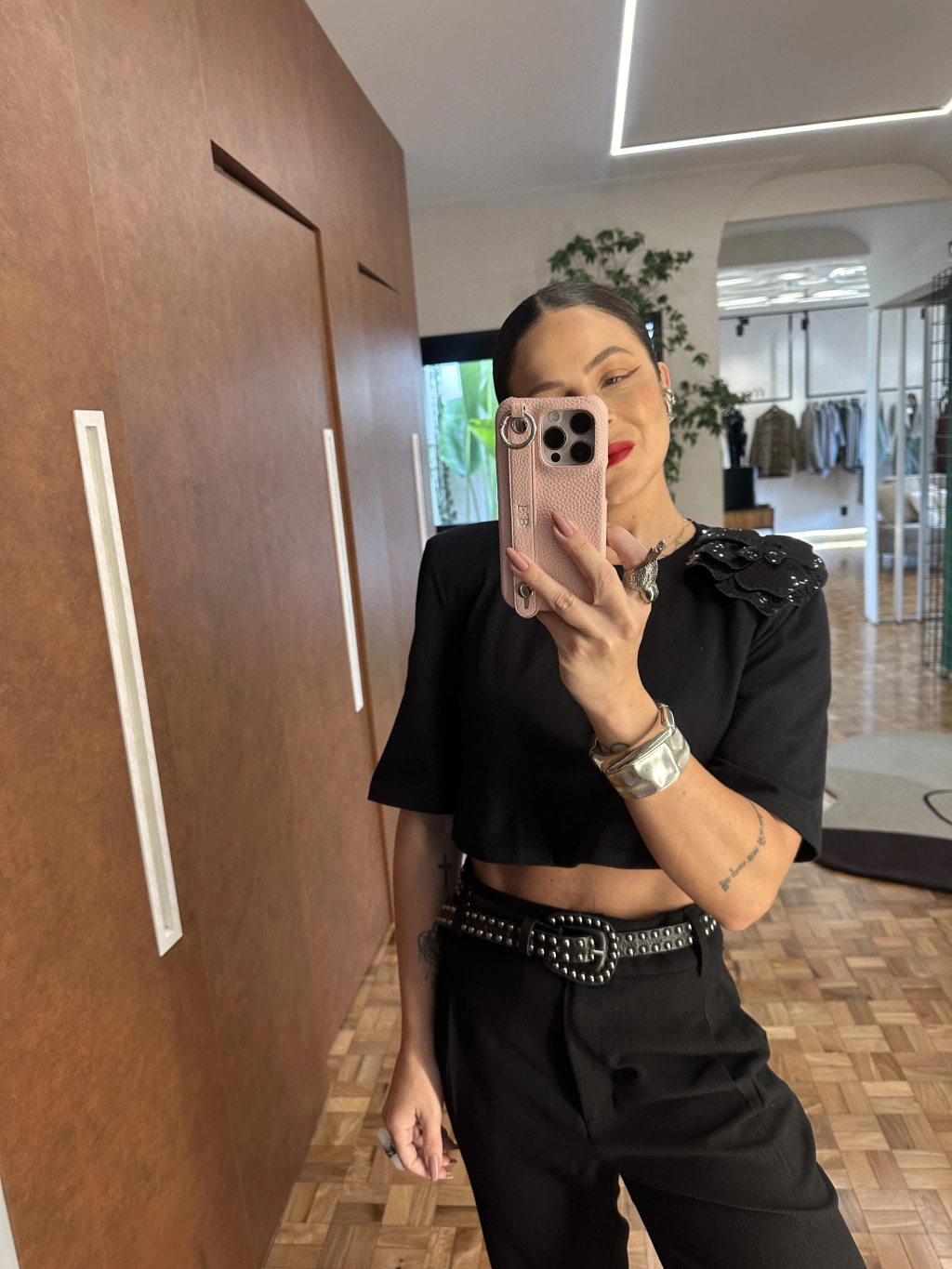Com flor em paetês, a t-shirt feminina em modelagem cropped é uma peça atemporal e cheia de personalidade. Estruturada, a versão ainda conta com mangas curtas e decote redondo.