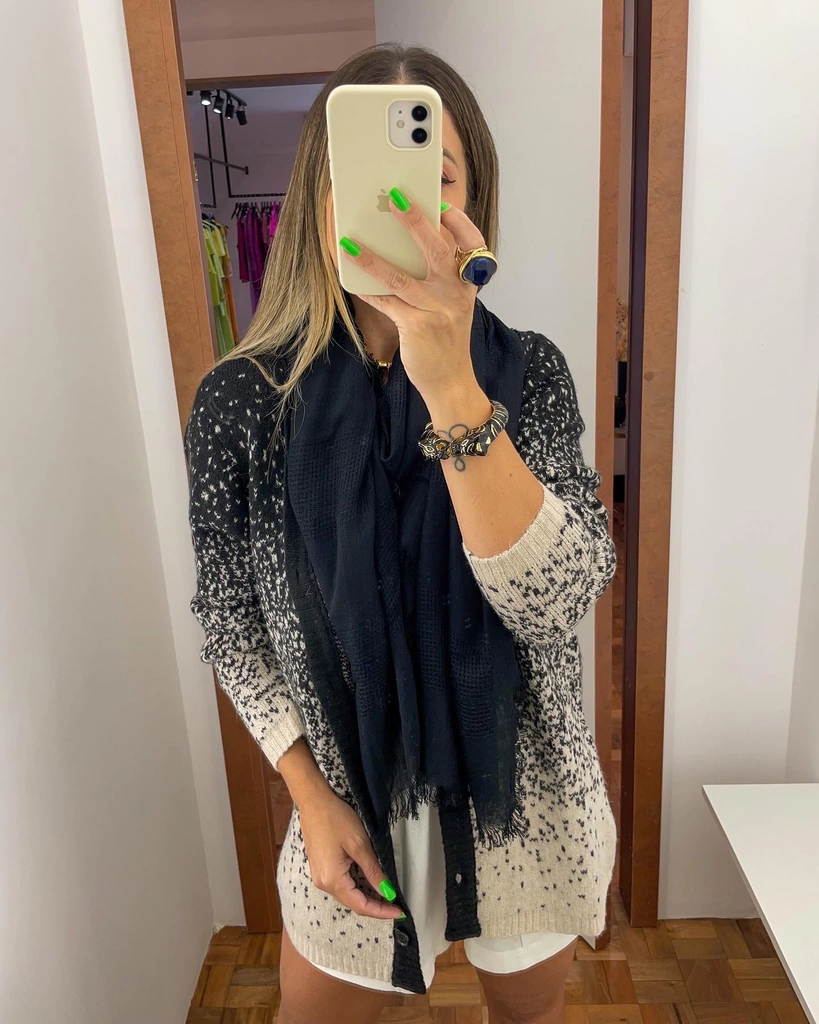 Lenço texturizado em viscose, com detalhes de franjas na barra.